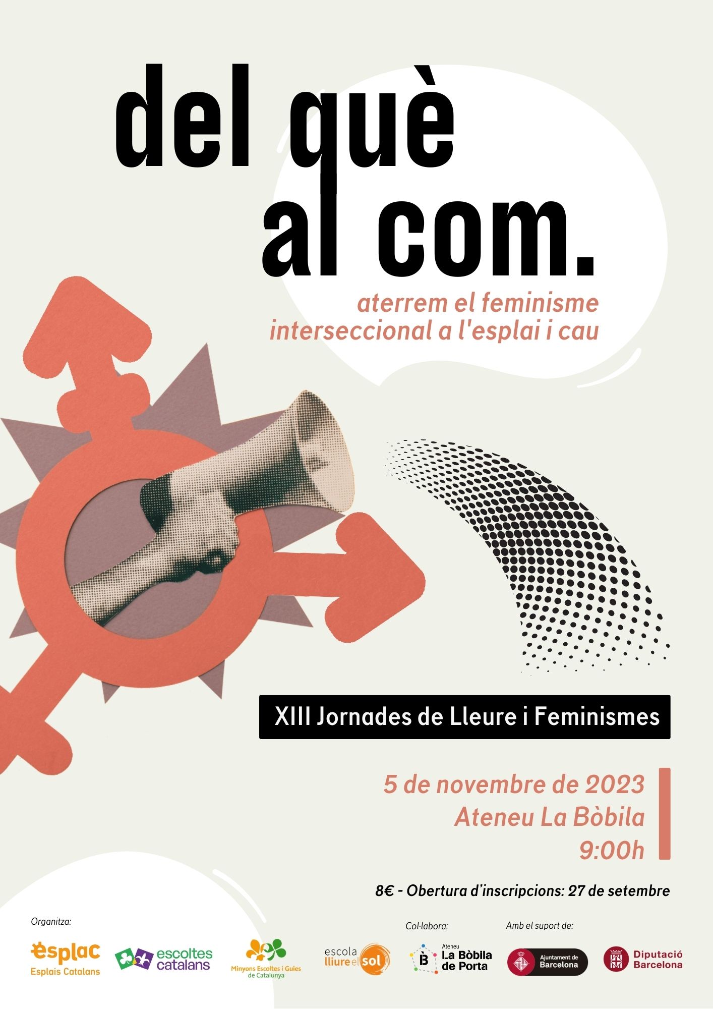 El diumenge 5 de novembre és el torn de les esperades JORNADES DE LLEURE I FEMINISMES, que aquest any celebren la seva tretzena edició. La voluntat d’aquest espai és anar més enllà de la teoria i dels discursos per formar-nos i reflexionar sobre com portem a la pràctica el feminisme interseccional. Altre cop, al web trobareu tots els detalls! Us podeu inscriure a través de l’Escola Lliure el Sol.