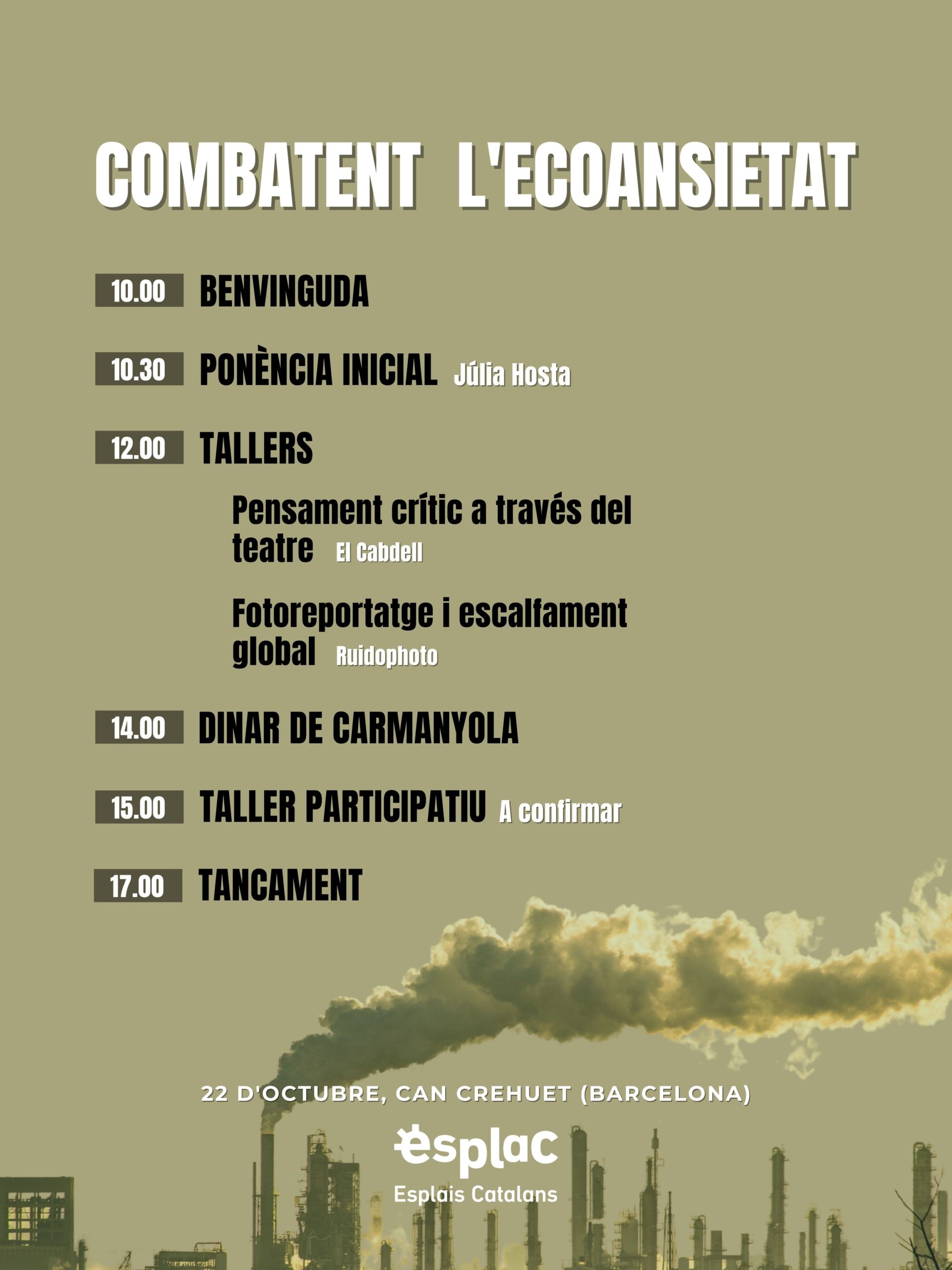 El diumenge 22 d’octubre arriba la desena edició de les JORNADES AMBIENTALS, aquest cop per parlar sobre com combatem l’ecoansietat. Al web d’esplac trobareu tot el que necessiteu saber sobre aquesta trobada! Podeu inscriure-us a través de l’Era.